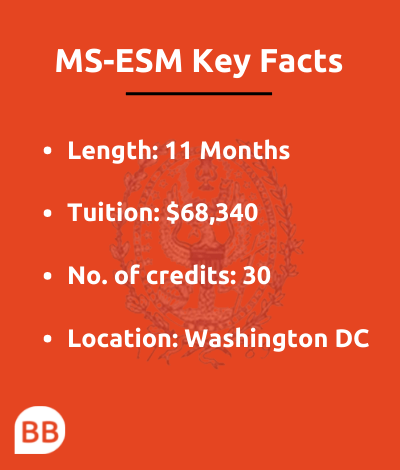 The Georgetown MS-ESM is scheduled to begin in August 2022. The curriculum features 16 courses and will be taught over 11-months in Georgetown’s Washington DC campus.