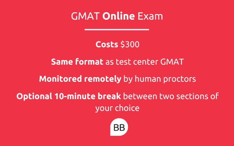 Three-quarters of GMAT test-takers opt to do so at a test center. But since it was introduced five years ago, more and more are opting to sit the online GMAT exam. It offers lots of flexibility as you can register to take the test at home, with around-the-clock testing appointments available.