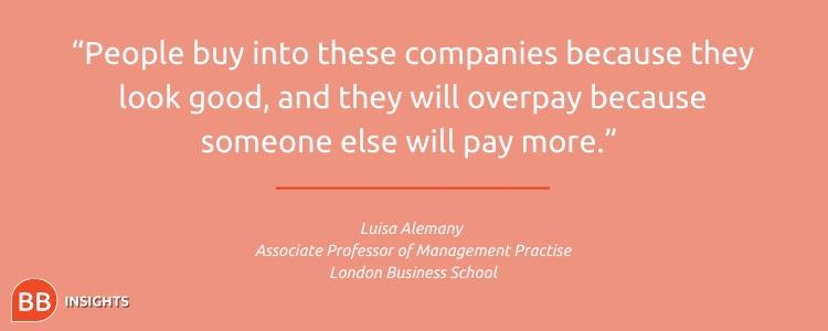“People buy into these companies because they look good, and they will overpay because someone else will pay more,” explains Luisa Alemany, associate professor of management practice at London Business School.