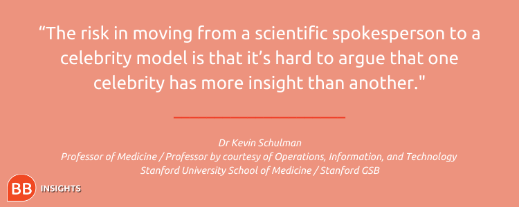 Moreover, while Dr Kevin Schulman (pictured right), professor of medicine at Stanford University School of Medicine and professor by courtesy of operations, information, and technology at Stanford GSB, believes that celebrity endorsements can be helpful when organizations tailor the language of the campaigns to the target population, he notes a need to be cautious about strategy.