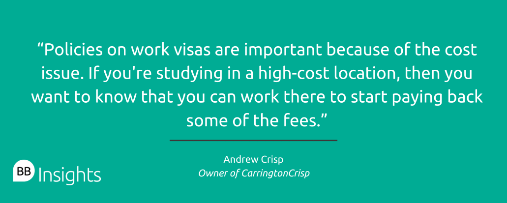 International students are already voicing concerns about the unpredictable nature of US immigration and cost of living, says Andrew Crisp, co-founder of CarringtonCrisp, a consultancy for marketing for business schools and universities.