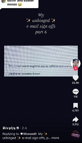Gen Z email sign off #4: "This email was brought to you by caffeine and anxiety"
