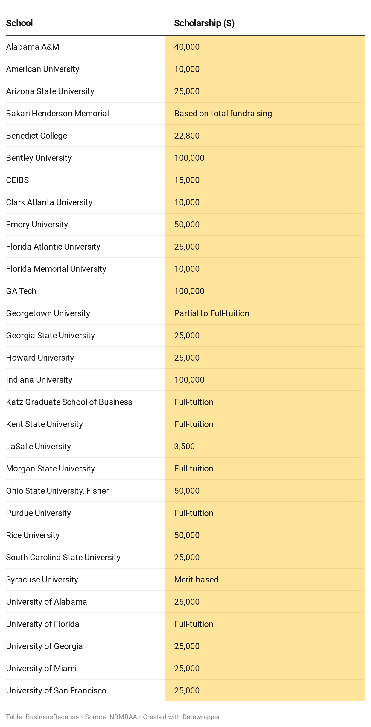 Through its Collegiate Partnership Program, NBMBAA offers a variety of scholarships in partnership with business schools listed here: