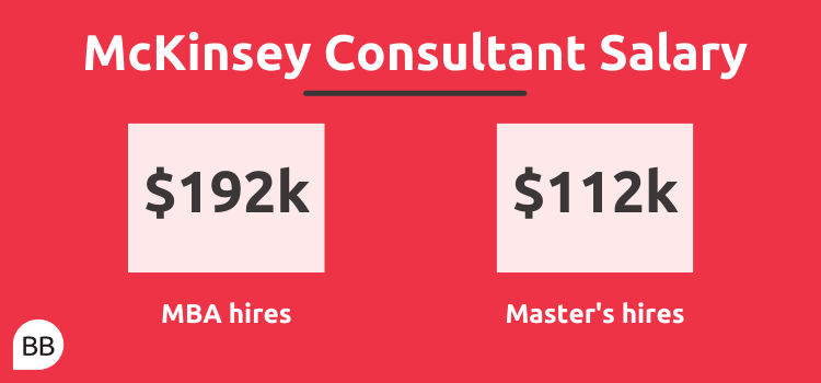 McKinsey consultant salary prospects are particularly strong for MBA graduates, who can expect a base salary of $192,000. Master’s graduate salaries stand at around $112,000.